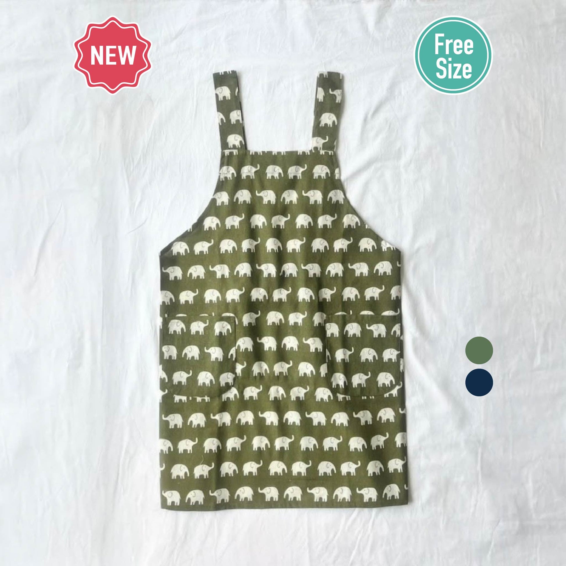 ならんだゾウのプリントが可愛いエプロン。
